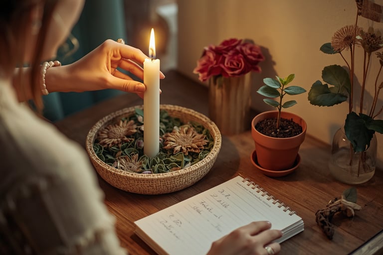 El simbolismo del fuego sigue siendo el núcleo de la fiesta; encender una vela es un gesto de bienvenida a la luz y de protección, lo que te da como resultado un ancla ritual para tus intenciones y calma la mente.