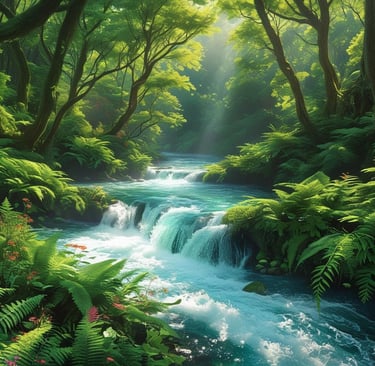 Agua: Canal de emociones y sueños. Los ríos y lluvias son espejos del alma, usados para limpiar karmas y abrir la intuición. Cristales como amatista, piedra lunar y turmalina azul amplifican su poder.