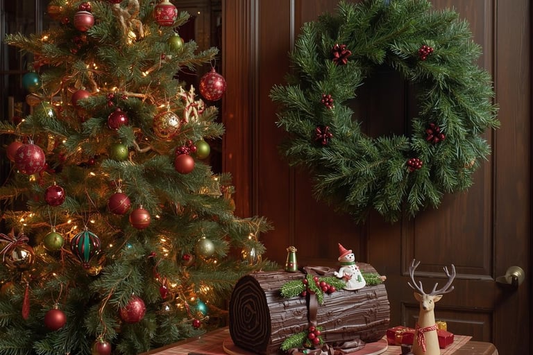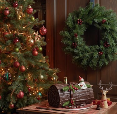 El tronco de Yule: encendido para atraer prosperidad y protección, se transformó en el tronco navideño, incluso en su versión dulce como postre.
