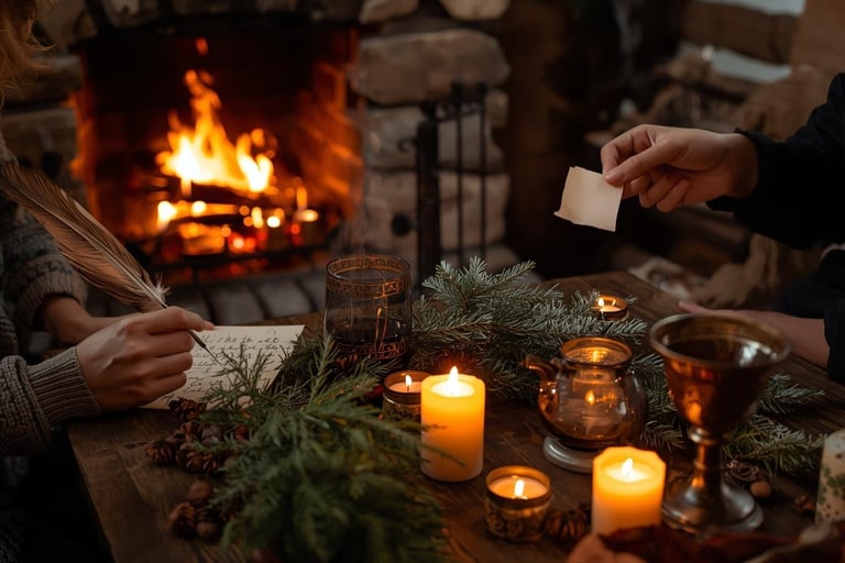 ✨ En resumen: cada ritual de Yule es un acto simbólico de conexión con la naturaleza y con nosotros mismos. La vela, el fuego, las ramas verdes, los deseos escritos… todo nos recuerda que la vida es cíclica, que la oscuridad es necesaria y que la luz siempre regresa.